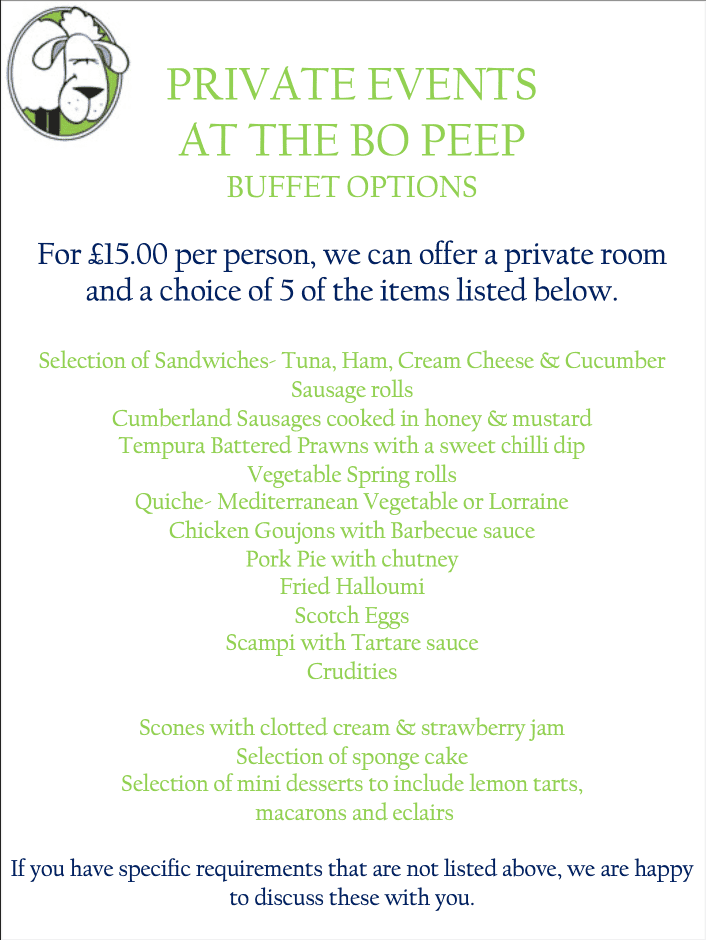 Why not host your event at The Bo-Peep?